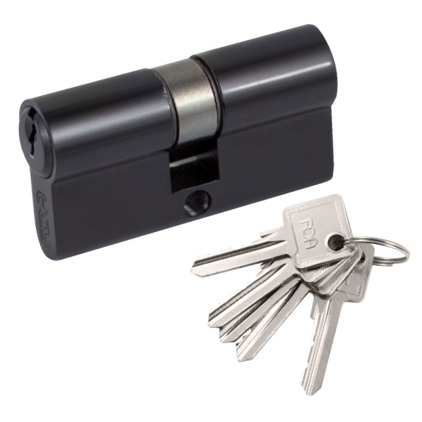 Циліндр дверний RDA 30/30мм, английський ключ/ключ, 5 ключів, чорний