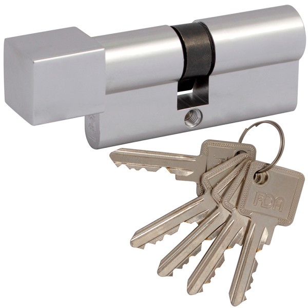 Циліндр RDA 30/38мм англійський тип ключ/квадратна поворотна ручка, хром