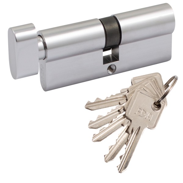 Циліндр дверний RDA 35/35 мм, английський ключ/поворотник, 5 ключів, хром