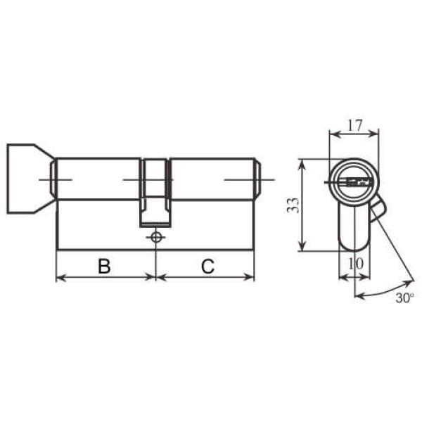 Циліндри Protect рекомендуються для встановлення в приміщеннях з базовим рівнем безпеки. Добре підходять для створення майстер-систем.. У циліндрі розташовано шість корпусних пружних пінів, і в плузі також шість пінів. Піни плуга конічної форми та виконані з латуні. У комплект поставки входить п'ять ключів та кріпильний гвинт.