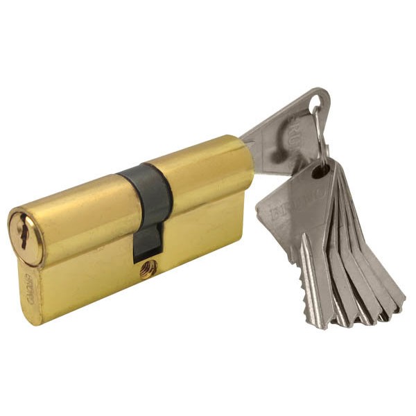 Циліндр Вгипо для вхідних дверей в кольорі полірована латунь виготовлений з високоміцного сплаву. Він обладнаний п'ятьма штифтами з латуні з можливістю перекодування і захистом від висвердлювання. П'ять комплектних англійських ключів виконані з цинкового сплаву. В комплекті є кріпильний гвинт.