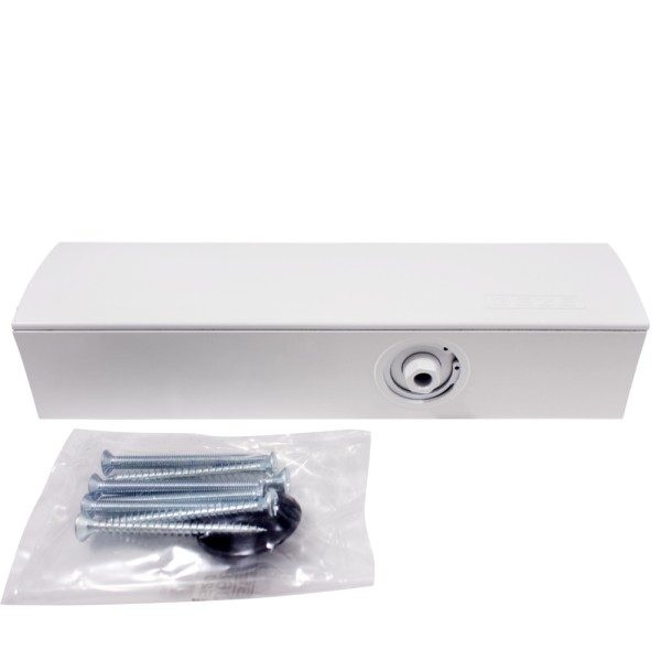 Дверний доводчик Geze TS 3000 BC у білому кольорі без тяги. Застосування доводчика дозволяє значно зменшити зношування дверних петель та іншої дверної фурнітури та забезпечити надійне закриття дверей. Рекомендується встановлювати доводчики на дверях, обладнаних системою контролю доступу, на евакуаційних та протипожежних дверях. Допустима вага дверей не більше 80 кг, а ширина полотна не більше 1100 мм.