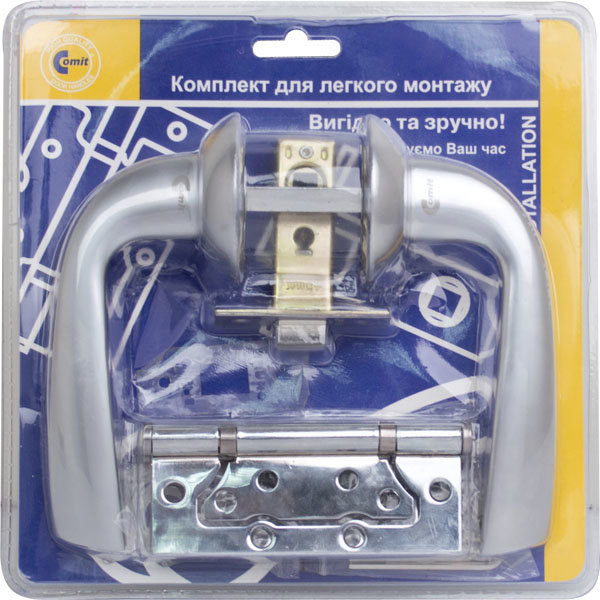 Комплект Comit Kea 6-45 колір хром/матовий хром. Ручка+засувка+ 2 петлі в блістер упаковці.