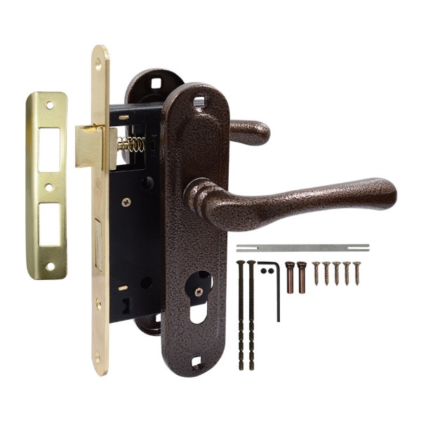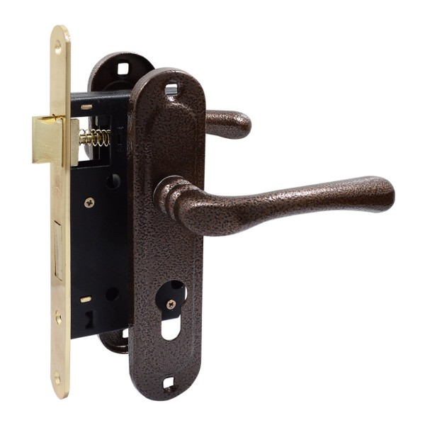 Комплект (ручка на планці 55910К6 + замок 968-45 без циліндра) коричневий