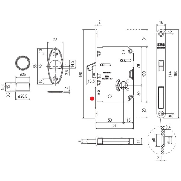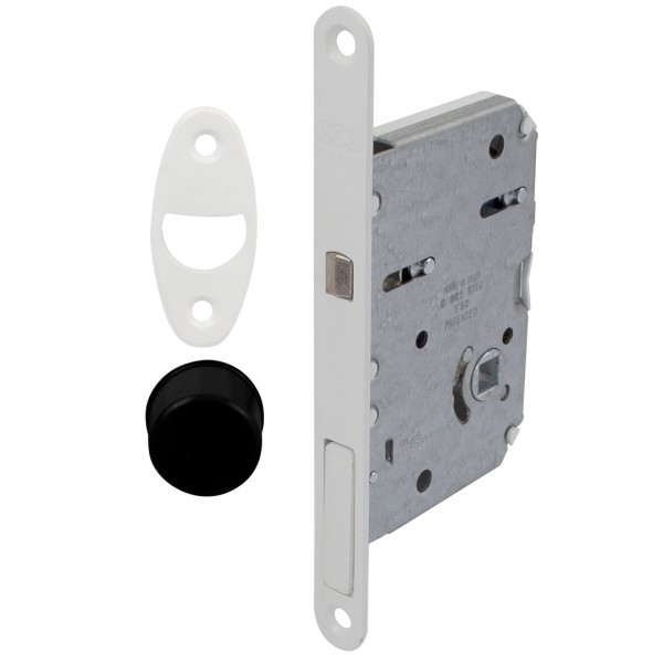 Запірний механізм для розсувних дверей AGB Scivola Tre CLASS призначений під встановлення ручок модельного ряду WAVE. Унікальність механізму полягає в тому, що він має єдине врізання для всіх типів закривання, що відкриває можливість заміни запірного механізму за лічені хвилини, навіть після установки. Для виробництва запірного механізму AGB використовують високоякісну сталь, яка відрізняється міцністю та зносостійкістю, що суттєво збільшує ресурс запірного механізму. Модель має врізний принцип кріплення та представлена у сучасному кольоровому варіанті матовий білий.