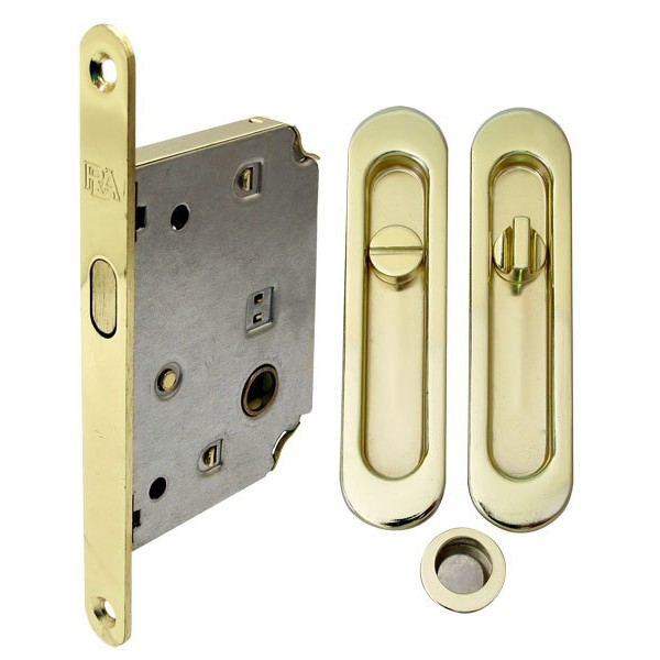 Ручка RDA SL-155 + замок RDA з відповідною планкою 4120.Комплект призначений для установки на міжкімнатні розсувні двері. Виготовлений з високоякісної сталі в кольорі полірована латунь.