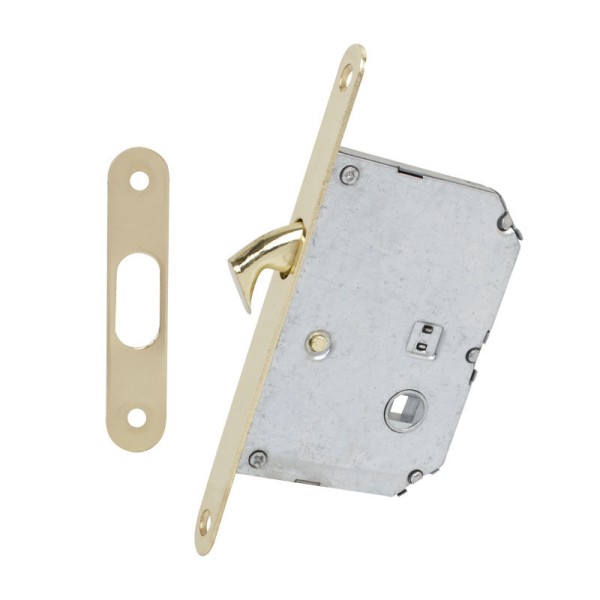 Від звичайного цей замок відрізняє форма засувки, схожа на гачок. Цей гак забезпечує з'єднання з відповідною планкою, за рахунок чого розсувні двері, зміщується горизонтально стіни, залишається закритою. Виготовлений механізм з високоякісної сталі в кольорі полірована латунь.