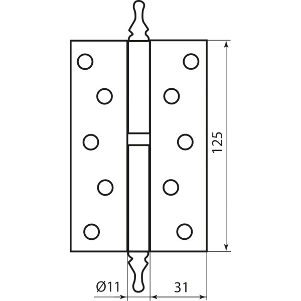 Завіса дверна Fuxia з фігурною верхівкою 125 * 2,5 (1 підшипник, сталь) матовий нікель(ліва) (12845)