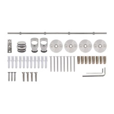 Для монтажу та надійної роботи розсувних систем в асортименті також є допоміжні елементи: стабілізуючі нитки для фіксації полотна, заглушки для профілів, прокладки під напрямні, ручки та кріплення – все необхідне для повної комплектації.