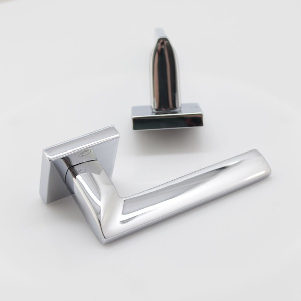 Ручка Convex 1495 на квадратній розетці, матовий хром. Модель для міжкімнатних дверей. Виготовлена зі спеціалізованого сплаву ZAMAK, який складається з алюмінію та цинку та відрізняється високими зносостійкими властивостями. Додаткове гальванічне покриття. Довжина ручки 130 мм. Розміри розетки 50х50 мм.