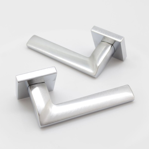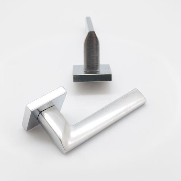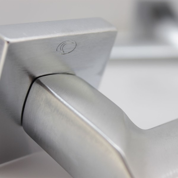 Ручка Convex 1495 на квадратній розетці, матовий хром. Модель для міжкімнатних дверей. Виготовлена зі спеціалізованого сплаву ZAMAK, який складається з алюмінію та цинку та відрізняється високими зносостійкими властивостями. Додаткове гальванічне покриття. Довжина ручки 130 мм. Розміри розетки 50х50 мм.