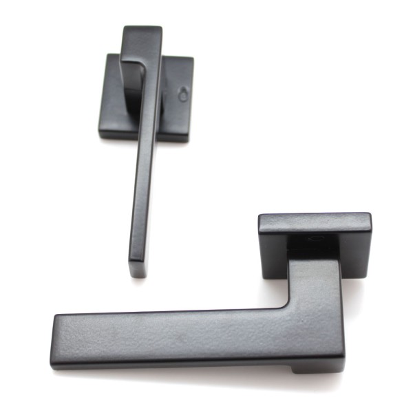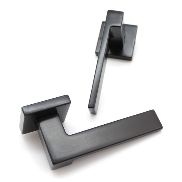 Ручка Convex 1535 на квадратній розеті, матовий чорний. Модель для міжкімнатних дверей. Виготовлена зі спеціалізованого сплаву ZAMAK, який складається з алюмінію та цинку та відрізняється високими зносостійкими властивостями. Додаткове гальванічне покриття.