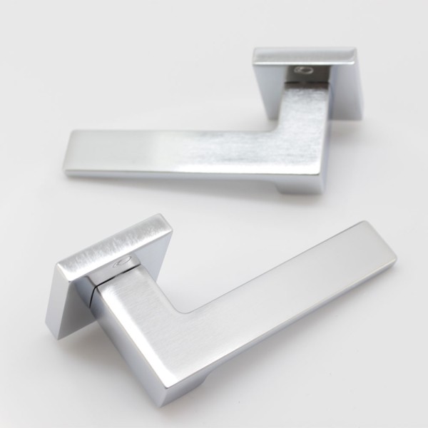 Ручка Convex 1535 на квадратній розеті, матовий хром. Модель для міжкімнатних дверей. Виготовлена зі спеціалізованого сплаву ZAMAK, який складається з алюмінію та цинку та відрізняється високими зносостійкими властивостями. Додаткове гальванічне покриття.