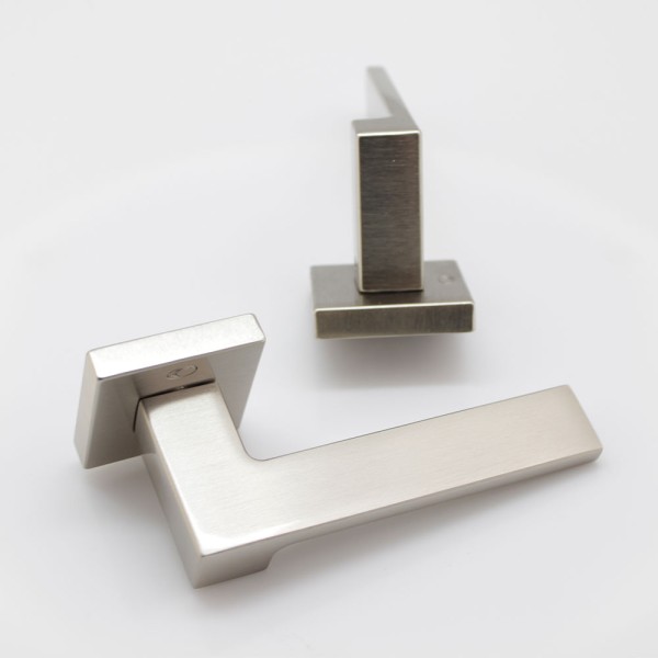 Ручка Convex 1535 на квадратній розеті, матовий нікель. Модель для міжкімнатних дверей. Виготовлена зі спеціалізованого сплаву ZAMAK, який складається з алюмінію та цинку та відрізняється високими зносостійкими властивостями. Додаткове гальванічне покриття.