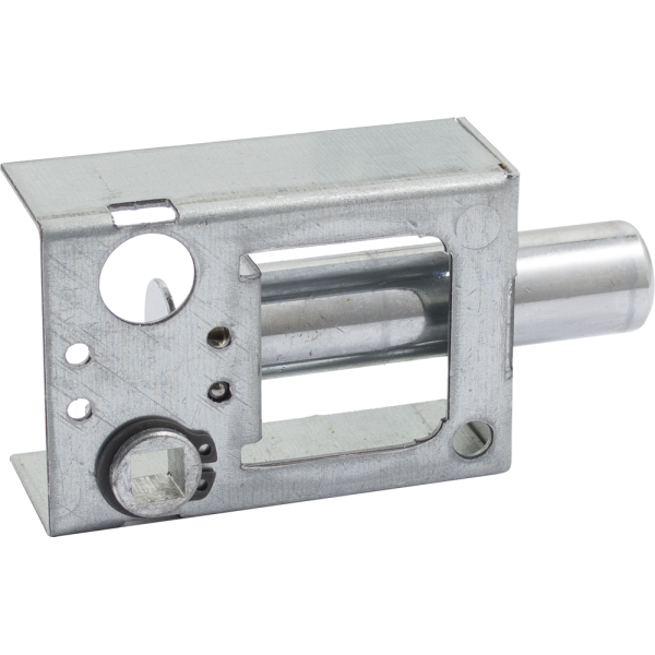 Модель засувки виготовлена з високоякісної міцної сталі, має врізний принцип кріплення та одинарний ригель циліндричної форми.