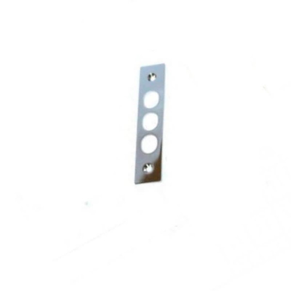 Планка у відповідь до замку. Колір - хром.Відповідна планка зазвичай розміщується на дверній рамі і є необхідним елементом для дверей, оберігаючи дверну коробку від зносу, викликаного проходженням запірного язичка і ригелів. підвищує загальну стійкість замку до деяких видів злому.