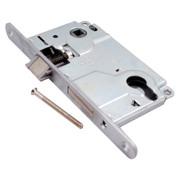 Замок врізний AGB B010255034 - це міжкімнатний механізм під циліндр в кольорі матовий хром, призначений для установки в дерев'яні або сантехнічні двері. Корпус захищений від попадання пилу або деревної стружки. Монтаж простий і не вимагає спеціальних навичок. Може встановлюватися на двері лівого і правого відкривання.
