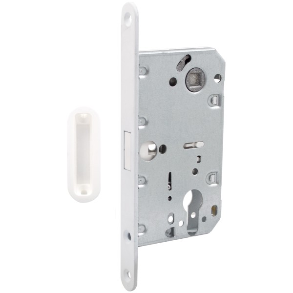 Механізм замка магнітний 81702 Comit міжцентрова відстань 85 мм + планка з відбійником, білий (57535)
