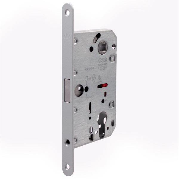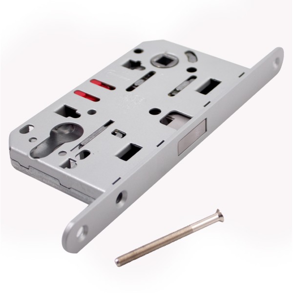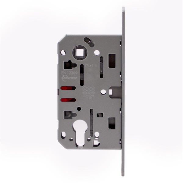 Механізм під циліндр AGB Mediana Polaris у кольорі сатин хром, виготовлений з високоміцного металу і призначений для монтажу в дерев'яні міжкімнатні або сантехнічні двері. Монтаж простий і не вимагатиме спеціальних навичок. Механізм симетричний і може встановлюватись у правосторонні або лівосторонні двері.