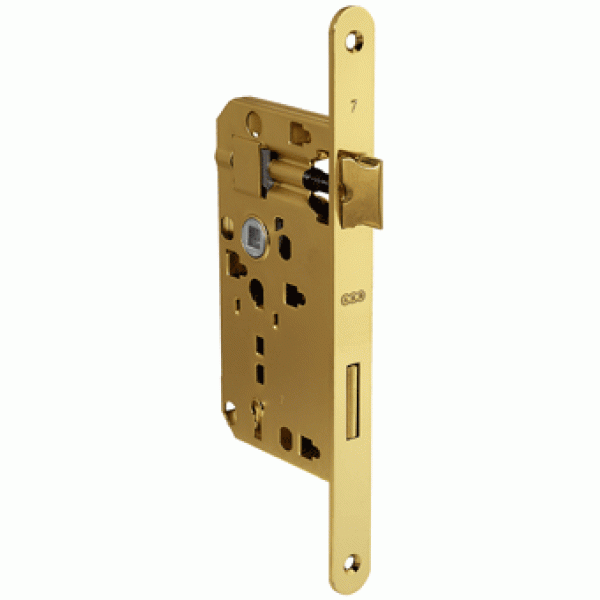 AGB Art. B100775503 Механізм ригельний WC Euro72 латунь 18мм - врізний замок для міжкімнатних дверей. Відстань між квадратом ручки та отвором закриття дорівнює 72 мм: Стандарт призначений для дверей, зроблених у центральній Європі. З опуклою клямкою по обидва боки для м'якого закривання дверей. Реверсивний для правих та лівих дверей.