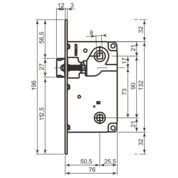 Видалення квадрата під ручку, мм: 50;