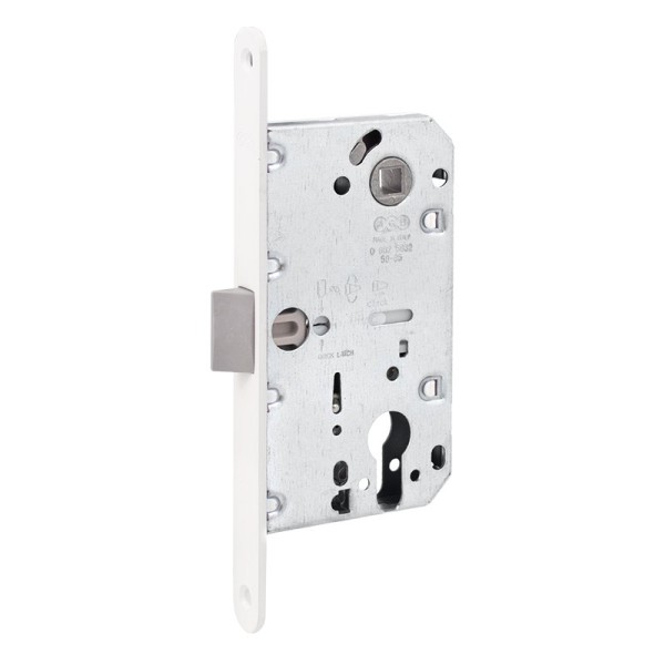 Механізм WC AGB Mediana Evolution для міжкімнатних дверей білого кольору, виготовлений з високоміцного металу. Корпус механізму захищений від попадання пилу або стружки деревини. Монтаж простий і не вимагатиме спеціальних навичок. Реверсивність засувки дозволяє встановлювати його на двері лівого та правого відчинення.