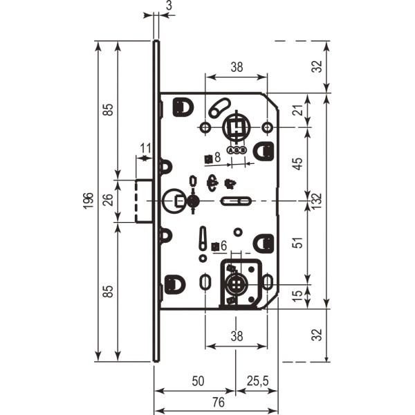 Замок для вхідних дверей Mottura Art. DP25170000 3-ригеля