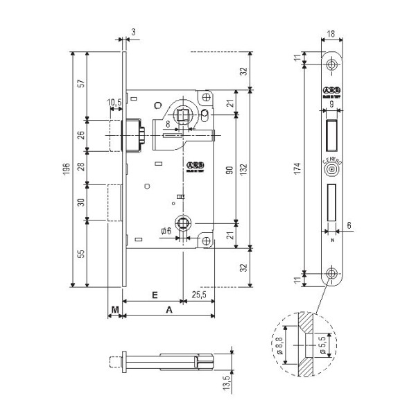 Замок для розсувних дверей AGB Art. B007023503 під циліндр латунь
