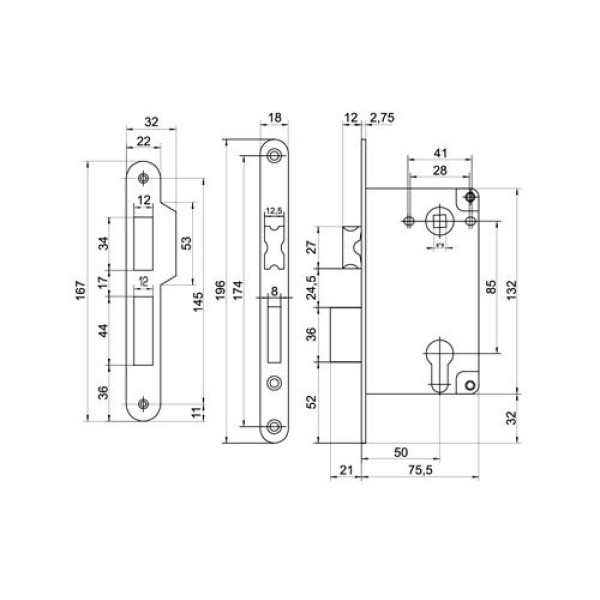 Замок сувальдний з засувкою Securemme 2030XCL6028A85 3 ригеля