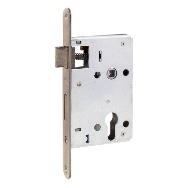 Замок для вхідних дверей Bruno 968-55 - це врізний, циліндровий замок з реверсивною клямкою. Цей замок призначений для встановлення в металеві вхідні двері. Корпус та кришка замку виконані з цинку. Відстань до ключового отвору (Backset) 55 мм. Підходить для дверей правого та лівого відчинення.