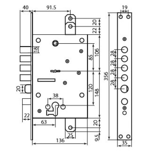 Замок 4-ригельний Mottura Art. 54J797BSRN5DC4C CR із засувкою та допоміжним замком під євро циліндр, лівий.