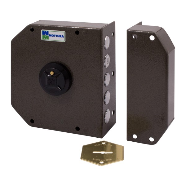 Дверний замок Mottura 20.500 (20500). Mottura - італійська компанія, заснована в 1963 році, є світовим лідером у виробництві замків для вхідних дверей, а також циліндрів та інших систем безпеки. Основна причина популярності продукції компанії полягає у високій надійності виробів, які відповідають всім стандартам якості та критеріям безпеки. Накладний замок Mottura 20.500 (20500) однонаправленного замикання. Замикання зсередини ключем. Корпус замку виготовлений з оцинкованої фарбованої сталі. Ригелі із нікельованої сталі. Замок комплектується п'ятьма сувальдними ключами. Матеріал ключа - латунь. Довжина ключа - 60 мм. BackSet - 63 мм. Діаметр ригелів - 18 мм. Вихід ригелів - 40 мм. Кількість обертів: 4 півоберта. Розміри корпусу 132х146х30 мм. Клас секретності замка – четвертий. Країна виробництва – Італія. У комплекті 5 сувальдних ключів, накладка на ключовий отвір та відповідна частина.