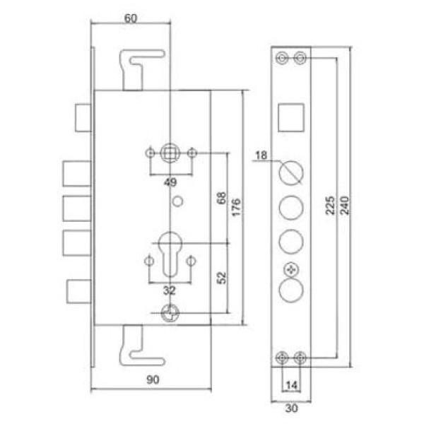 Врезной замок модели BRUNO BR-62 предназначен для запирания металлических дверей (китайского производства), толщина которых зависит от используемого цилиндрового механизма (в комплект не входит). Замок выпускается правый и левый. Размер торцевой планки 24