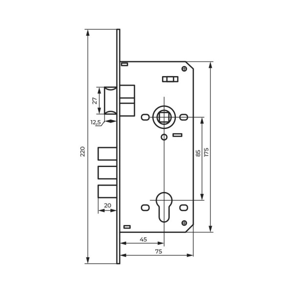 Замок для вхідних дверей Comit Art.CТ8545 під циліндр, 3-ригельний із засувкою