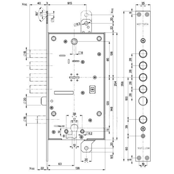 Замок для вхідних дверей 4-ригеля перекодуємий Mottura 52Y771BDRN54VD (правобічний) (11656)