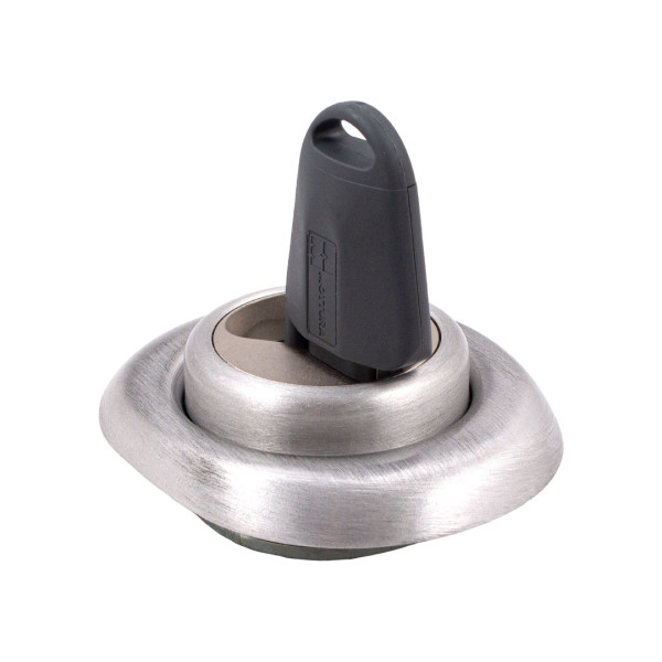 Магнітні Defender DF371 регулюються пружиною (10 мм). Вони складаються зі сталевого Defender з накладкою з листового металу (72 x 90 мм) і спеціальної обертової кришки, яка повністю захищає шпонковий паз. Обертання корпусу контролюється спеціальним магнітним ключем, безпека якого забезпечується комбінацією полярності 7 магнітів у 8 можливих положеннях. Паз для ключа додатково захищений обертовою шайбою з хромованої сталі зі шліцом для ключа 5 мм. Накладка Defender має лише одне покриття INOX, тоді як накладка з алюмінію/латуні пропонує 7 різних покриттів для найкращого поєднання з наявними ручками та ручками. Можливість виготовлення Defender з таким самим кодуванням у версії KA, що відкривається тим самим магнітним ключем. Доступна з кріпленнями M6 з міжосьовою відстанню 26/38 мм або 31 мм (на замовлення тільки для DF371) - кріпильні гвинти включені в комплект. Спеціальний магнітний ключ дозволяє відкрити механічний ключовий замок. Ключовий замок Defender з магнітним або магнітно-механічним кодуванням з профілем RECTANGULAR з можливістю різних профілів ключів для отримання великої кількості кодів. Дублікат ключа в авторизованих центрах Mottura Club.