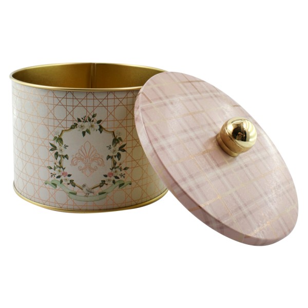 Круглий металевий контейнер Ø140x100 мм з ручкою-кругом – стильне та зручне сховище Покращте своє зберігання за допомогою стильного та практичного круглого металевого контейнера Ø140x100 мм . Виготовлений з міцного, високоякісного металу з офсетним друком, цей контейнер має надійну кришку зі зручною ручкою. Така конструкція дозволяє легко відкривати та надає йому класичної елегантності, водночас гарантуючи надійне зберігання вашого вмісту та захист від пилу та інших небезпек. Його кругла форма ідеально підходить для універсального зберігання на стільницях, полицях або в коморах. Цей круглий металевий контейнер з ручкою-круглячкою ідеально підходить для зберігання кухонних предметів першої необхідності, таких як кава, чай, цукор, борошно або спеції, організації рукоділля , підтримання порядку в офісі або для презентації невеликих подарунків та ласощів . Він пропонує як функціональність, так і естетичну привабливість. Ручка-круглячок додає чарівної деталі та спрощує доступ до вмісту.
