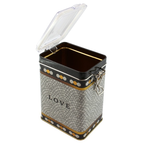 Прямокутна металева бляшанка для зберігання 75 x 100 x 150 мм із дротяною застібкою та прозорою кришкою – безпечне та видиме зберігання Упорядкуйте свої речі за допомогою безпечної та практичної прямокутної металевої бляшанки для зберігання розміром 75 x 100 x 150 мм . Виготовлена з міцного, високоякісного металу з офсетним друком, ця бляшанка має надійну дротяну застібку та прозору пластикову кришку. Така конструкція дозволяє легко бачити вміст, гарантуючи його надійне зберігання та захист від пилу та інших небезпек. Її прямокутна форма робить її ідеальною для компактного зберігання на полицях, столах або в шухлядах. Ідеально підходить для зберігання рукоділля , канцелярських речей , дрібних інструментів , аксесуарів або як надійна та видима пакувальна коробка , ця прямокутна металева бляшанка для зберігання з дротяною застібкою та прозорою кришкою поєднує видимість із надійним закриттям.