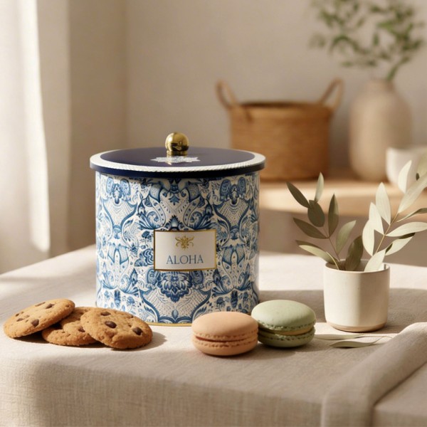 Коробка Azulejo, білий та синій, 17,5*15,5 см, кругла