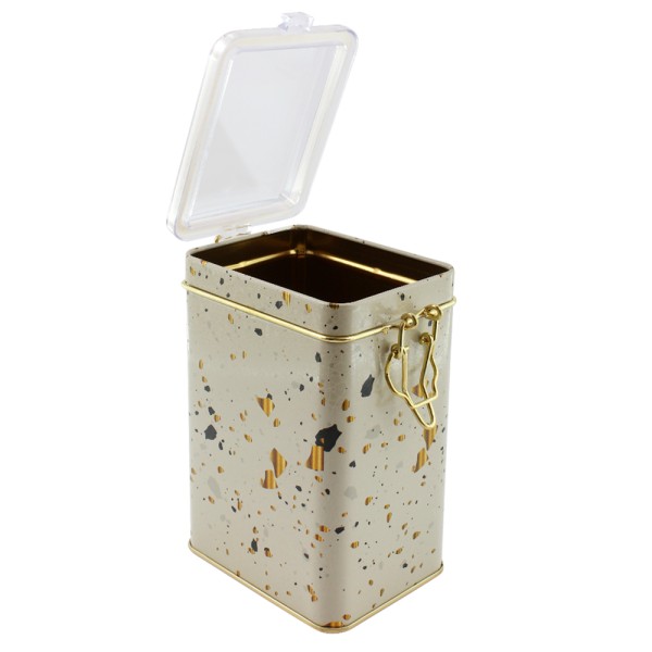 Прямокутна металева бляшанка для зберігання 75 x 100 x 150 мм із дротяною застібкою та прозорою кришкою – безпечне та видиме зберігання Упорядкуйте свої речі за допомогою безпечної та практичної прямокутної металевої бляшанки для зберігання розміром 75 x 100 x 150 мм . Виготовлена з міцного, високоякісного металу з офсетним друком, ця бляшанка має надійну дротяну застібку та прозору пластикову кришку. Така конструкція дозволяє легко бачити вміст, гарантуючи його надійне зберігання та захист від пилу та інших небезпек. Її прямокутна форма робить її ідеальною для компактного зберігання на полицях, столах або в шухлядах. Ідеально підходить для зберігання рукоділля , канцелярських речей , дрібних інструментів , аксесуарів або як надійна та видима пакувальна коробка , ця прямокутна металева бляшанка для зберігання з дротяною застібкою та прозорою кришкою поєднує видимість із надійним закриттям.
