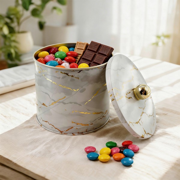 Кругла металева каністра Ø140x125 мм об'ємом 1,7 л з ручкою-круглячкою – широке та містке сховище Максимізуйте свій простір для зберігання завдяки місткому круглому металевому контейнеру Ø140x125 мм . Цей контейнер об'ємом 1,7 л, виготовлений з міцного високоякісного металу з офсетним друком, має зручну ручку на кришці для легкого відкривання та надійного закриття. Його широка та висока циліндрична форма забезпечує додаткову місткість, що робить його ідеальним для організації більшої кількості продуктів на вашій кухні, в коморі чи майстерні. Ідеально підходить для зберігання великої кількості кавових зерен , борошна , цукру , макаронних виробів , великогабаритного приладдя для рукоділля , великих інструментів або як місткий контейнер для зберігання . Цей круглий металевий контейнер з офсетним друком та ручкою-круглячкою поєднує практичність зі зручним дизайном. Ручка-кругляч забезпечує зручне захоплення для легкого зняття кришки, а надійне закриття допомагає зберегти вміст свіжим, сухим та захищеним.