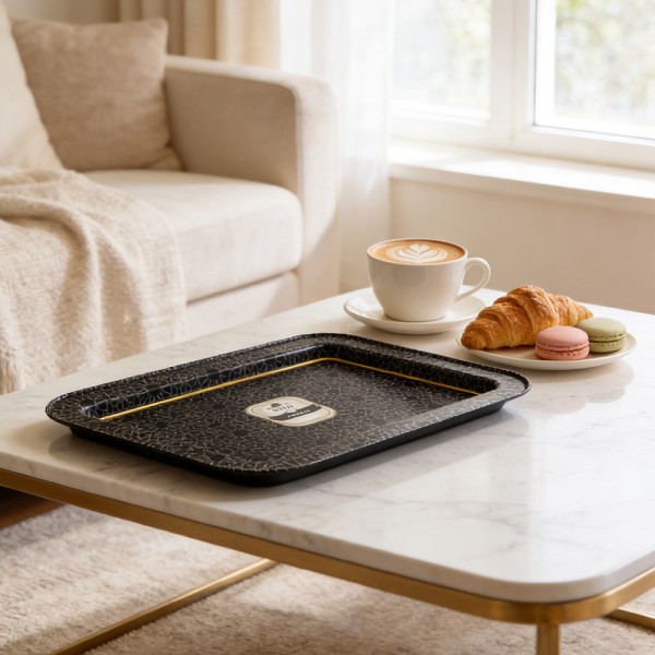 Металевий прямокутний лоток 310x430 мм – міцний та універсальний дизайн. Розширте свої можливості сервірування за допомогою прямокутного металевого підноса розміром 310x430 мм , розробленого для довговічності та універсальності в різних умовах, від вашого дому до комерційних приміщень. Виготовлений з високоякісного металу з офсетним друком, цей міцний піднос пропонує достатньо місця для зберігання кількох предметів. Його класичний прямокутний дизайн гарантує, що він бездоганно впишеться в будь-який інтер'єр. Ідеально підходить для зайнятих домогосподарств , ресторанів , служб громадського харчування , а також як надійна основа для великих подарункових наборів , цей металевий піднос з офсетним друком поєднує міцність та практичність. Легко очищувана поверхня та міцна конструкція гарантують тривале використання.