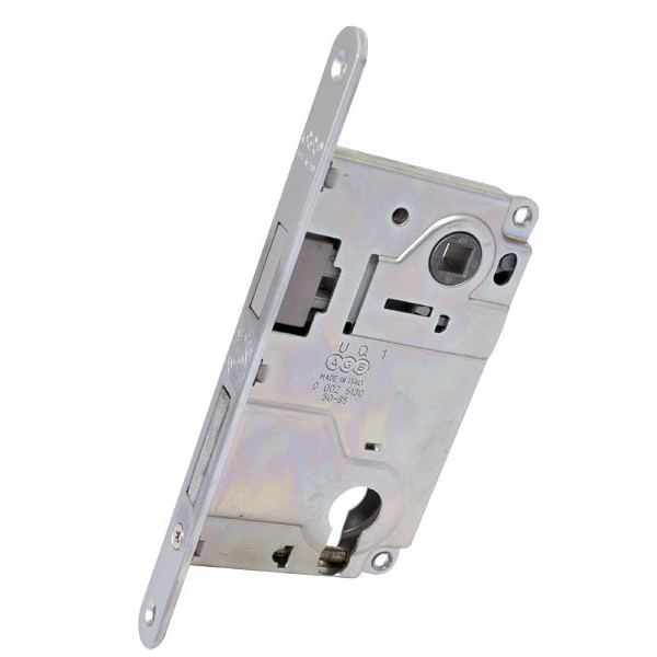 Механізм під циліндр AGB Centro Focus в кольорі матовий хром виготовлений з високоміцного металу і призначений для монтажу в дерев'яні міжкімнатні або сантехнічні двері. Монтаж простий і не вимагає спеціальних навичок. Корпус засува захищений від попадання пилу і деревної стружки.