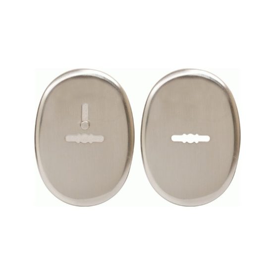 Накладка декоративна PROTECT призначена для встановлення на двері для сувальдних замків. Має овальну форму висотою 91 мм та шириною 66 мм. Колір накладки матовий нікель