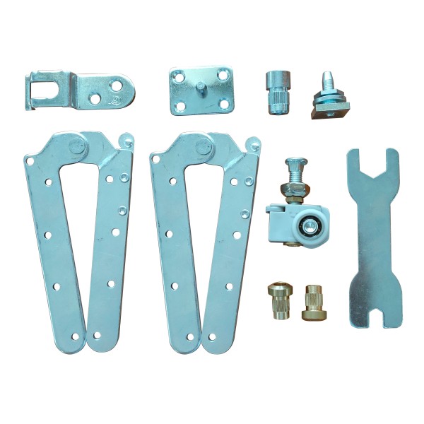 Комплект для системи, що складається, виготовлений з високоміцної сталі та здатний витримувати на собі двостулкову конструкцію вагою до 80 кг. Простота конструкції гарантує довговічність та надійність розсувної системи. Врізний спосіб кріплення, невидимість елементів не навантажують інтер'єр.