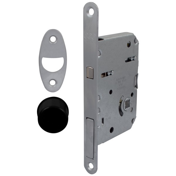 Запірний механізм для розсувних дверей AGB Scivola Tre CLASS призначений під встановлення ручок модельного ряду WAVE. Унікальність механізму полягає в тому, що він має єдине врізання для всіх типів закривання, що відкриває можливість заміни запірного механізму за лічені хвилини, навіть після установки. Для виробництва запірного механізму AGB використовують високоякісну сталь, яка відрізняється міцністю та зносостійкістю, що суттєво збільшує ресурс запірного механізму. Модель має врізний принцип кріплення та представлена у сучасному кольоровому варіанті матовий хром.