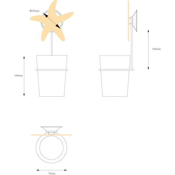 Стакан "Біла морська зірка" — елегантне та гігієнічне рішення для тих, хто цінує простір у ванній. Це підвісний аксесуар, який надійно кріпиться до гладкої поверхні завдяки міцним присоскам, усуваючи необхідність свердлити стіни.
