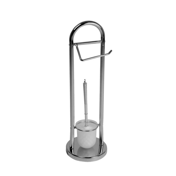 • Тип - напольный; • Основание, стойка, бумагодержатель - сталь в цвете полированный хром; • Основание - круглая подставка с утяжелителем; • Колба ершика - белый матовый пластик; • Щетка - белый полиэтилен; • Рукоятка - серебристый пластик, длина 22,5 см
