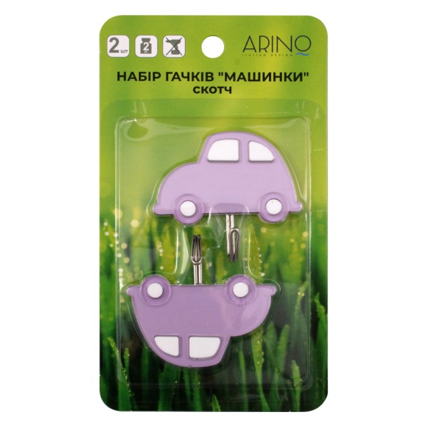 Набір гачків "Arino" Машинки, фіолетовий, 124×60×20 мм, 2 шт.