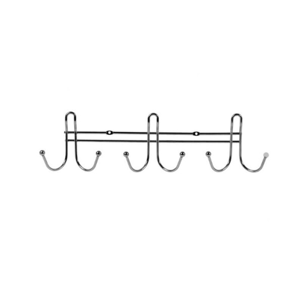 • Тип - подвесной; • Крепление к стене - дюбели; • Вешалка - стальная проволока 7 мм в цвете полированный хром; • На планке - 3 двойных крючка.